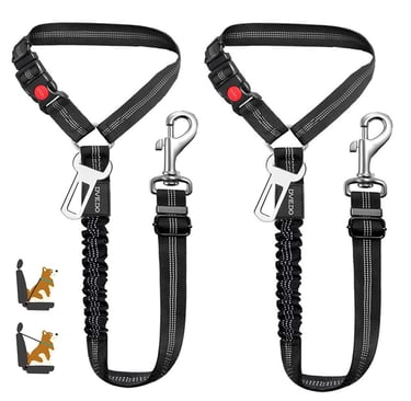 The DVEDO 2‑in‑1 Dog Seatbelts are a pair of adjustable restraint leads for dogs in cars. Key features include:
